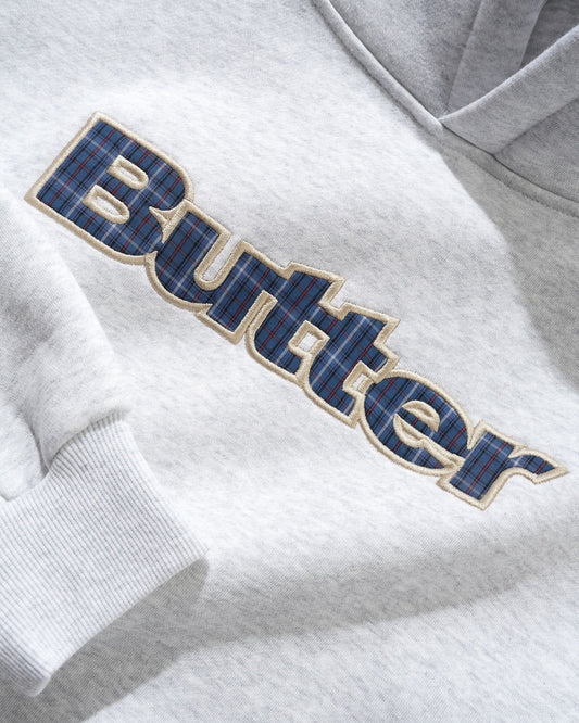 Plaid Logo Applique Pullover Hood - Ash