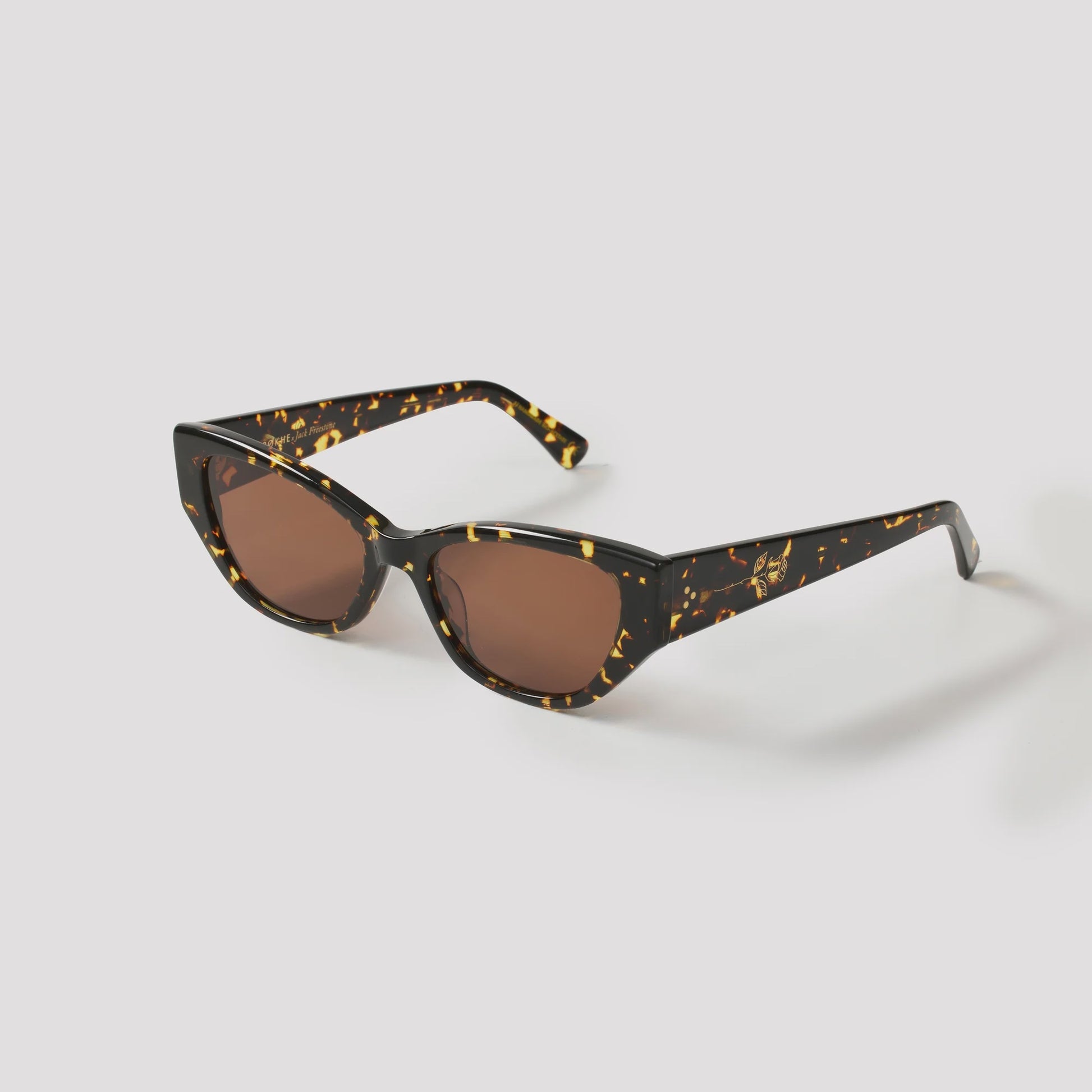Epokhe eyewear, in collaboration with Jack Freestone present a romantic extension of our infamous frame 'Reprise' in Crystal Dark Tortoise Polished / Bronze. Jack a globally recognised surfer who is carving out a new direction around lifestyle through vibrant travels, board experimentation, well-being and performance. Thanks to this partnership, this exclusive version of Reprise benefits from the finest Bio-Acetate and adorned with Jack's custom Rose insignia eloquently placed on each arm.